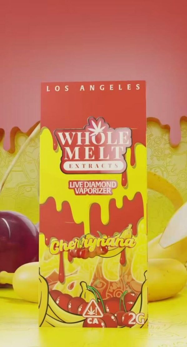 Whole melts disposable extracts Cherrynana mixes the DNA of the Cherry Pie and Banana Kush strains.