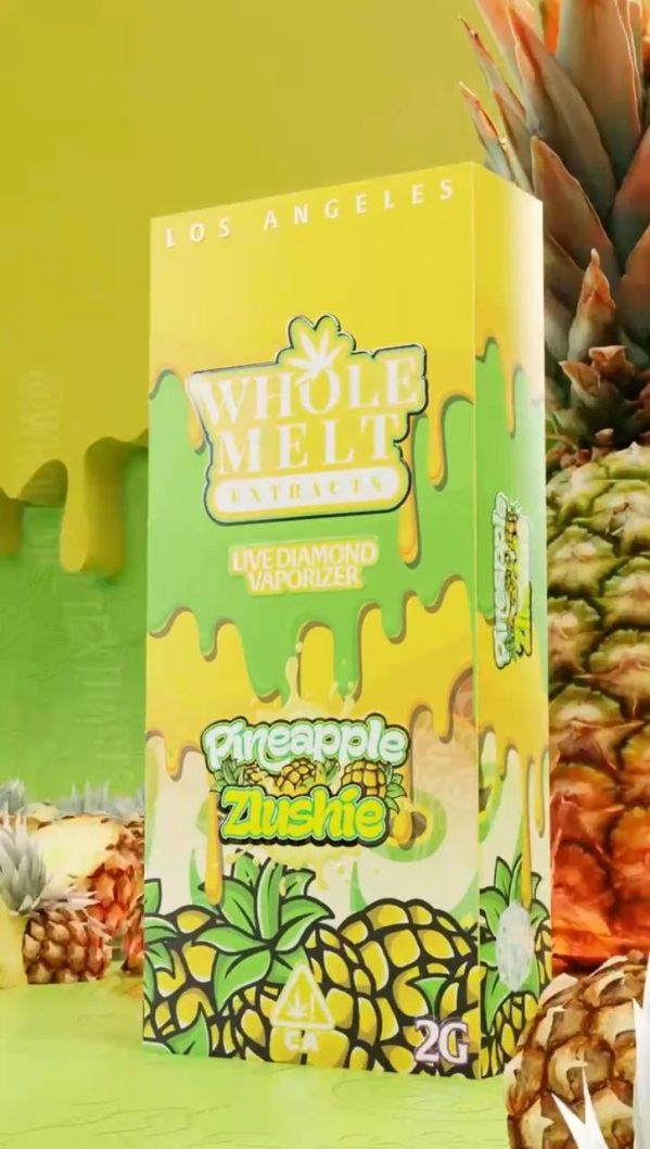 Whole Melt Extracts Pineapple Zlushie is a cannabis concentrate that has quickly gained a reputation for its vibrant flavor profile and potent effects, making it a favorite among cannabis enthusiasts. This extract is characterized by its refreshing and tropical aroma, reminiscent of a deliciously sweet pineapple slushie on a hot summer day. The scent is inviting and invigorating, creating an enjoyable sensory experience that sets the stage for what users can expect. The combination of juicy pineapple notes with hints of sugary sweetness and a touch of tartness results in a well-rounded flavor that enhances the overall enjoyment of consumption, making it a truly delightful choice for those who appreciate flavorful cannabis products.