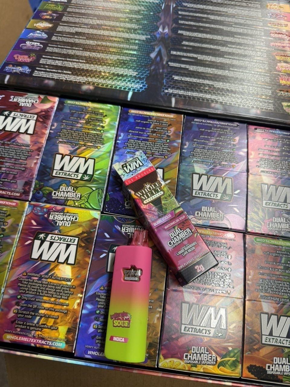 Whole Melts Watermelon Sour Dual Chamber Disposable is an innovative cannabis vape device designed to deliver a unique and dynamic vaping experience by combining two distinct cannabis oil formulations in a single, convenient disposable unit. This dual chamber technology allows users to enjoy the complementary effects and flavors of two different cannabis extracts simultaneously or separately, enhancing both the sensory and therapeutic experience. Inspired by the vibrant and tangy flavor of watermelon sour candy, this disposable vape offers a refreshing, sweet, and slightly tart profile that appeals to cannabis consumers who appreciate bold, fruity flavors with a sour twist.